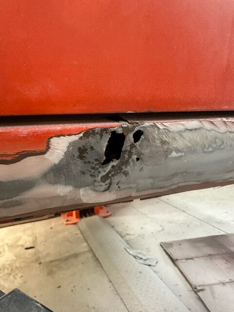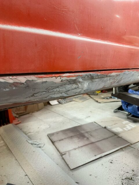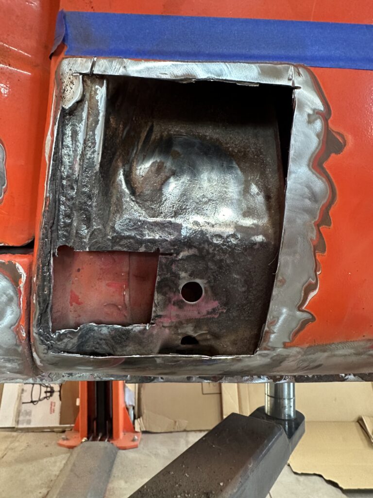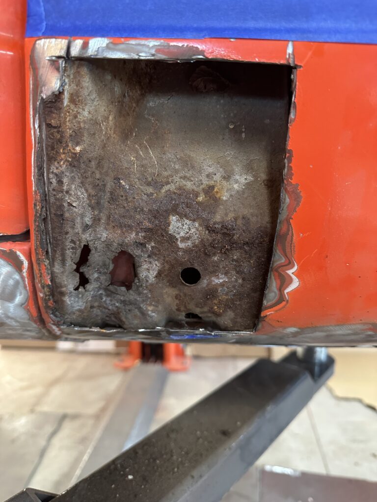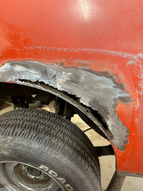 Today, I started sanding and prepping for body work. I uncovered more than I thought. This will be a pretty big job and take some time. I think the drive side might be a little less sheet metal work, but the bottom rear panel has an extensive rusted section.